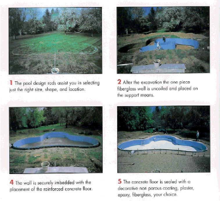 | 2. After the excavation the one piece fiberglass wall is uncoiled and placed on the support means. |